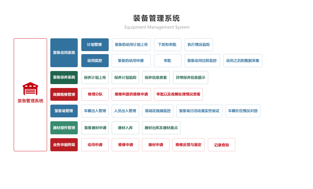 綜合保障系統依托物聯網、RFID識別和傳感技術,著眼作戰精準保障、戰備常態保障和官兵生活保障,對戰備物資、裝備器材、營房物資和被裝物資等的全生命周期的電子化管理,對官兵的健康實時監護。包含財務管理、軍需油運、武器裝備、衛勤管理、營房管理模塊。確保部隊出動,車輛給養油料跟得上,裝備維護情況實時掌握,營房管理工作平時與戰備同步推進。